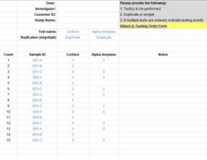 Keep organized in record time. If you’re sending samples to the Salimetrics CoreLab+, Salimetrics will auto-generate and send you a complete XLS sample roster that matches your sample-set for seamless organization. When you’re ready to submit your samples for testing, just specify the biomarkers for each sample you’re sending back to the lab.